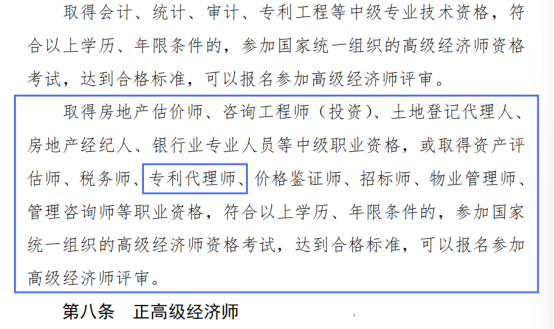近年來隨著越來越多的專利代理師報名參加知識產權師考試,而中級知識產權師考試中的經濟基礎,對考試者來說還是比較有難度的;但專利代理師從事專利代理等知識產權工作也要通過嚴格的考試、實習和執(zhí)業(yè)才能正式進入知識產權服務行業(yè)。況且知識產權師的工作更需要有專業(yè)基礎和專業(yè)背景的人員,因此不少省市已明確規(guī)定持有“專利代理師”資格的人員符合一定條件可以直接參評“高級知識產權師”職稱。此舉措不僅是對專利代理師資格的認可,也是吸引更多的優(yōu)秀專業(yè)人員進入到知識產權師的職稱隊伍中。